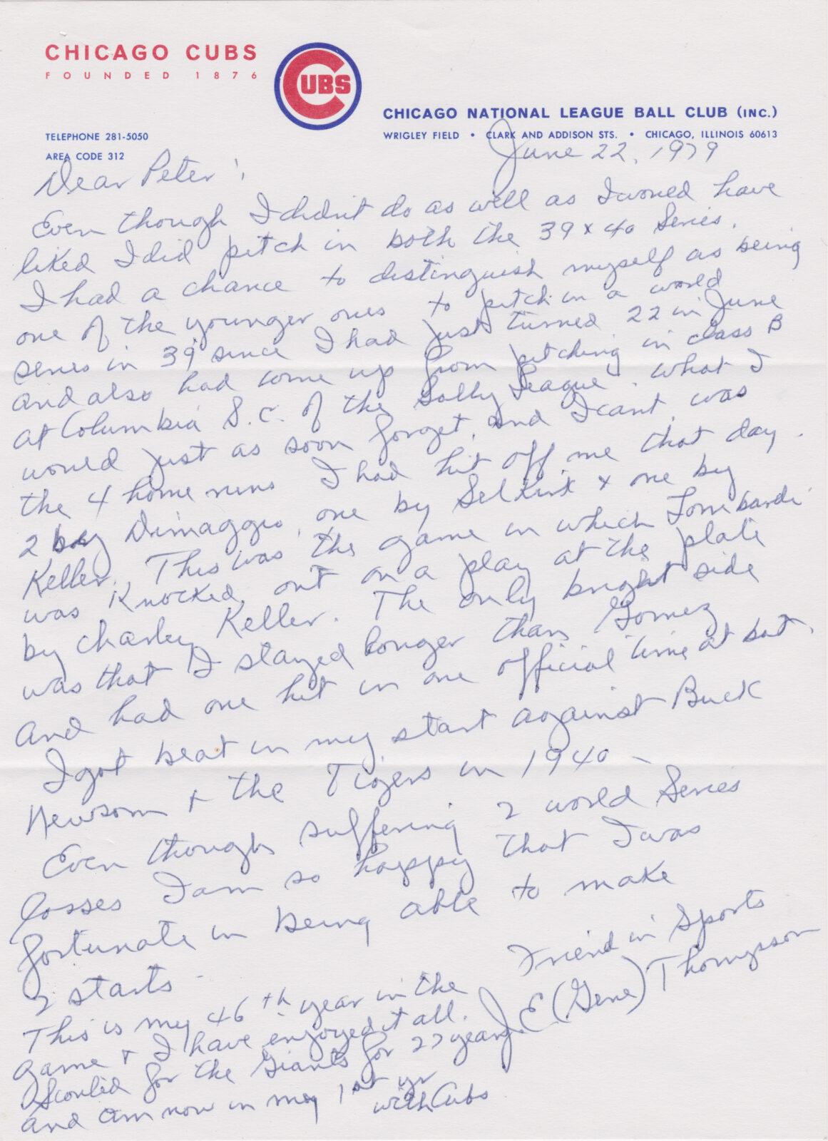Click on the image to enlarge it & read Thompson’s memories of the ’39 World Series.