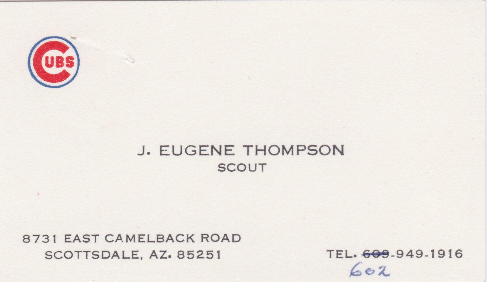 Gene Thompson's business card while scouting for the Chicago Cubs