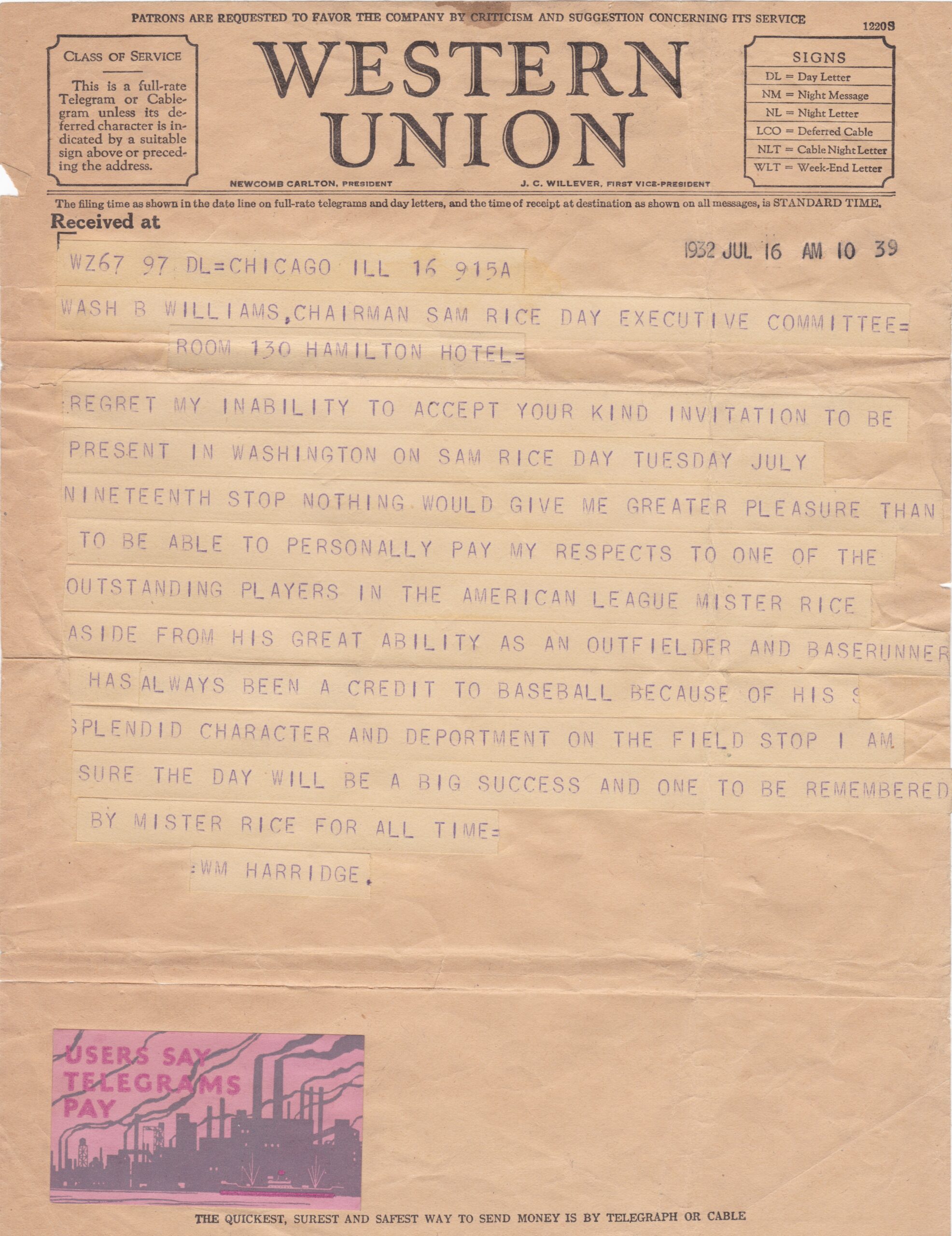 Before Rice left Washington, he helped the Senators return to the World Series in 1925, and 1933. The three AL pennants and 1924 title are the only postseason appearances in Senators history.