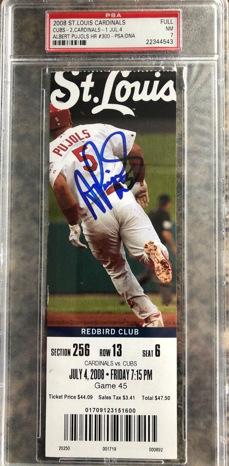 Shown here is the ticket from the game that featured Pujols’ 300th career homer, signed by Prince Albert himself. It is encapsulated in a PSA/DNA sleeve for authentication.
