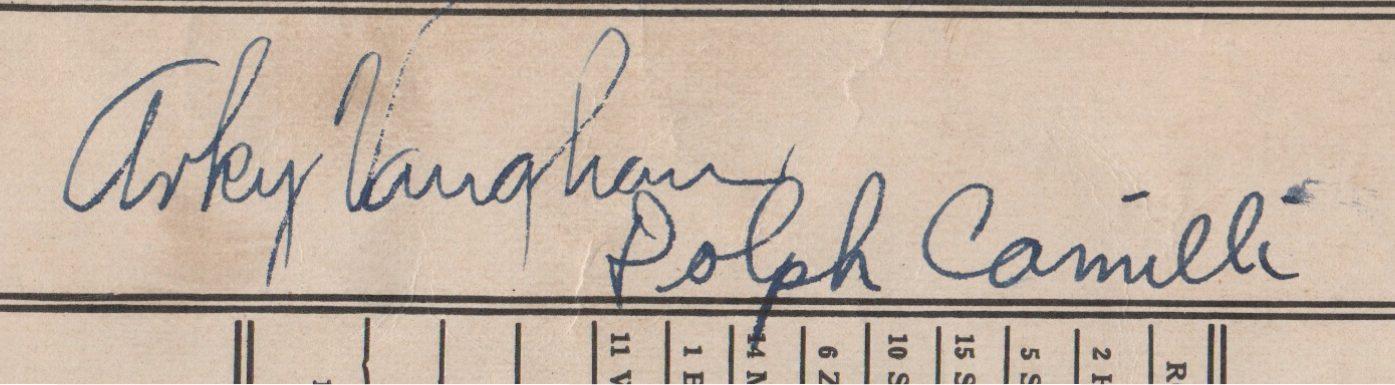 Along with that of the Hall of Fame shortstop are the signatures of Negro League great Satchel Paige, 1941 NL MVP Dolph Camilli, 1935 home run champ Wally Berger, and Tuck Stainback.