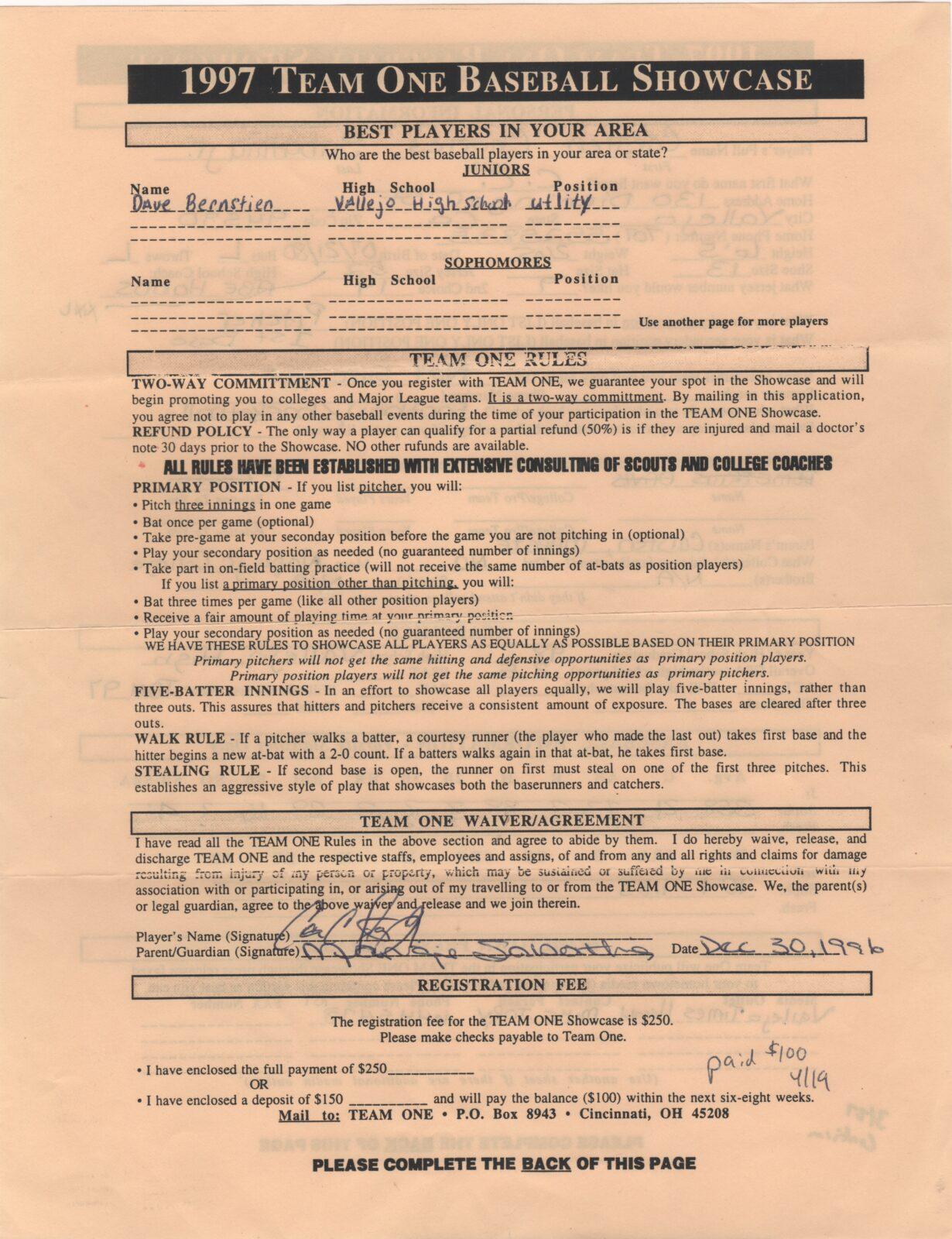 When Sabathia signed the contract shown above, the baseball season for his junior year in high school had not yet begun. Though he held great promise, no one would dare envision the level of performance he’d reach by the end of his time at Vallejo High School in California.