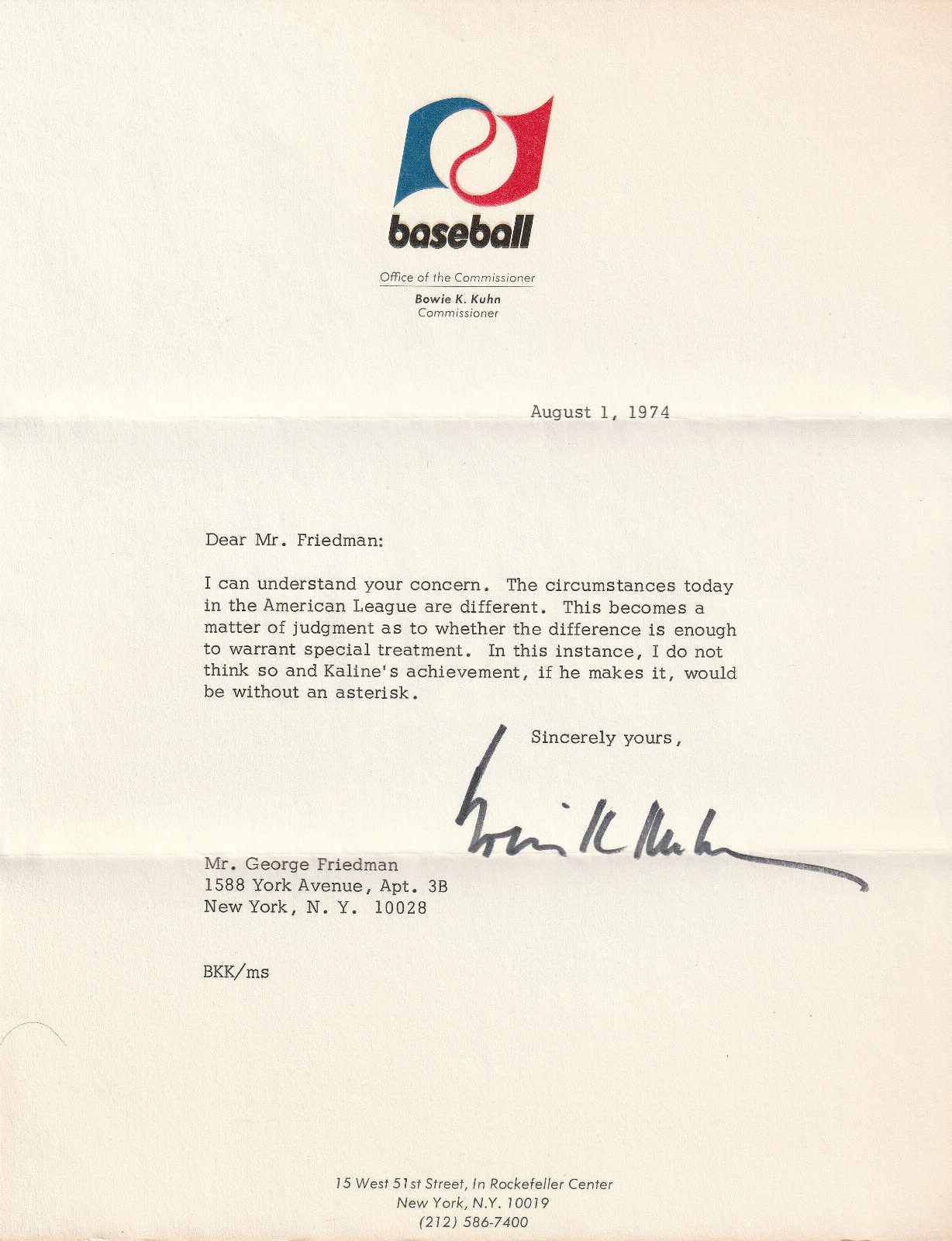 Kuhn shot down the idea of adding an asterisk to Al Kaline's hit total