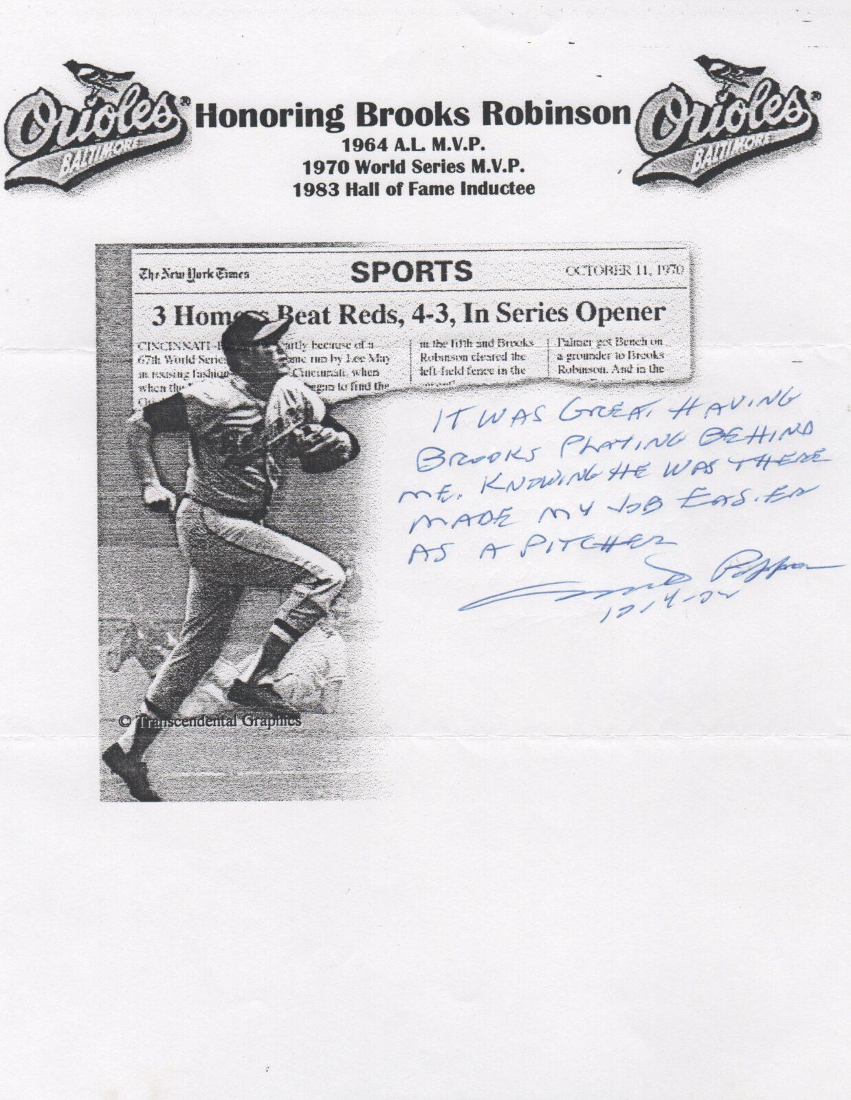 After some arm twisting, the good-natured Moeller added this to the bottom of Robinson’s note, “Jim, Brooks may be in the Hall of Fame, but when he faced me in that series, he grounded out to Gilliam. Tell him I said so! Sincerely, Joe Moeller”.