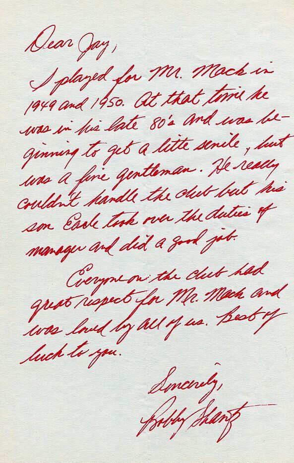 Bobby Shantz said as an octogenarian Mack was "a little senile but a fine gentleman"