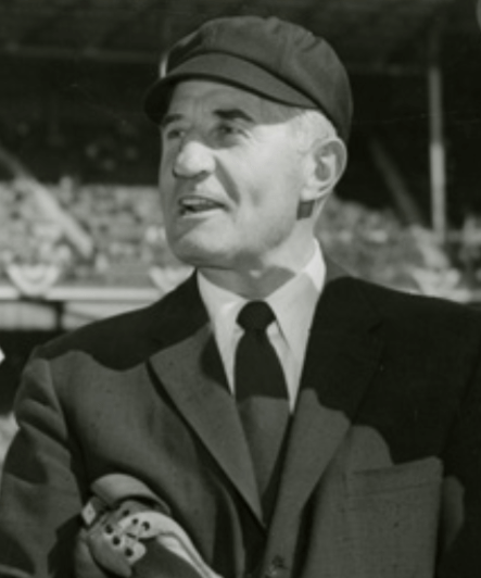 The umpire who made the memorable – and some say questionable – third strike call during Dale Mitchell’s pinch hit at bat in Don Larsen’s perfect game was Babe Pinelli. A big league infielder from 1919-1927, Pinelli found lasting fame in his second baseball career calling balls and strikes.