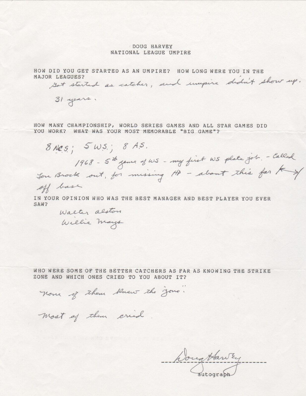 SARB ranked Doug Harvey as the 2nd greatest MLB ump ever, Referee magazine selected him as 1 of the 52 most influential in officiating history.