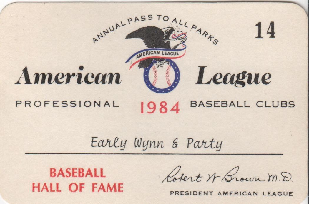 Being a member of the Hall of Fame has its perks - here's Wynn's 1984 pass to all AL games