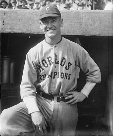 Cleveland second baseball Bill Wambsganss played at the edge of the grass as the runners ran with the pitch. Mitchell hit a line drive toward second base. The 5’11” Wamby darted to his right, leapt for the ball, and snared it with his glove. Wambsganns quickly made his way to the second base bag to double off Kilduff who was on his way to third. Off and running from first was Miller, fast approaching his fate of being the third out. Wambsganns tagged the runner for the third out.