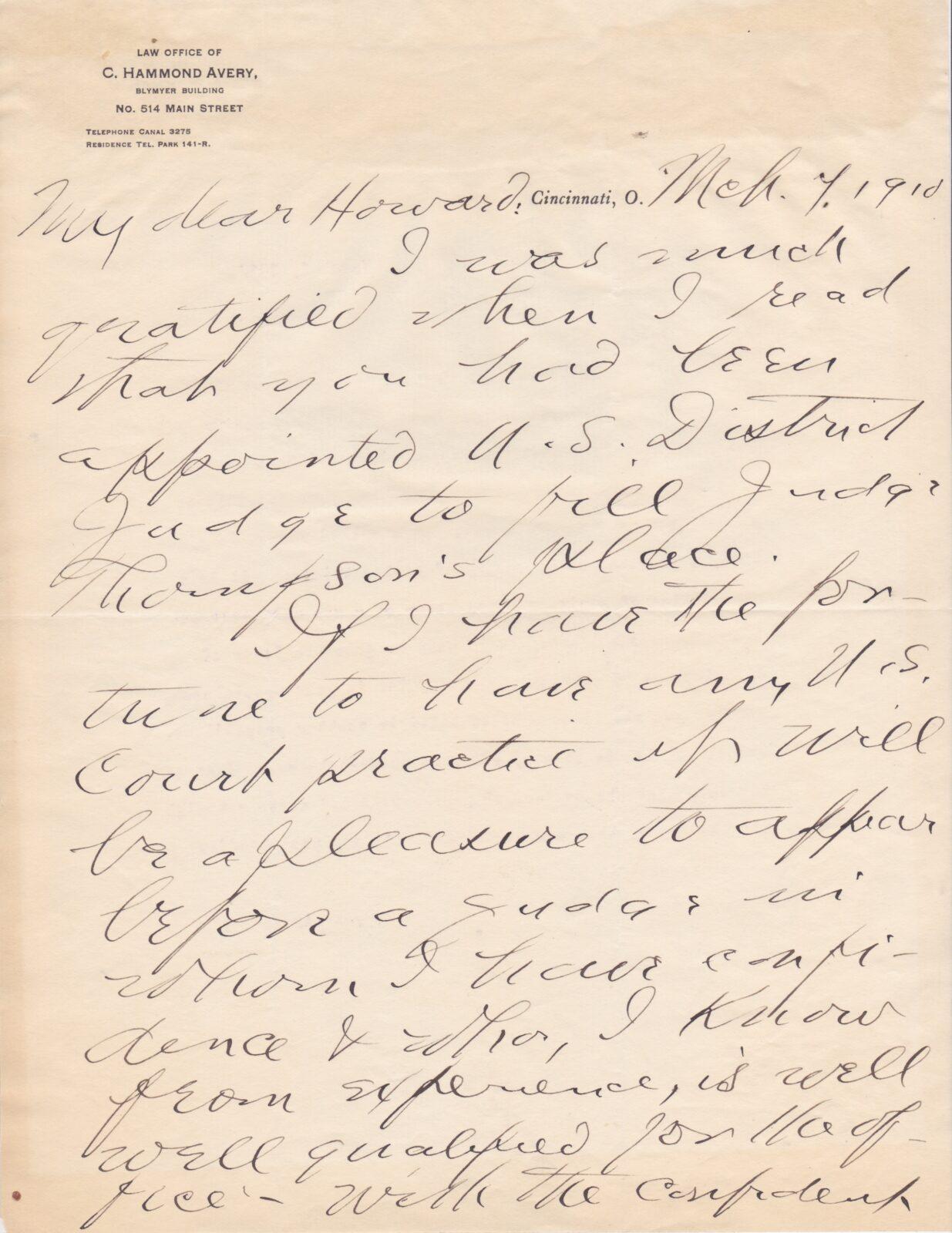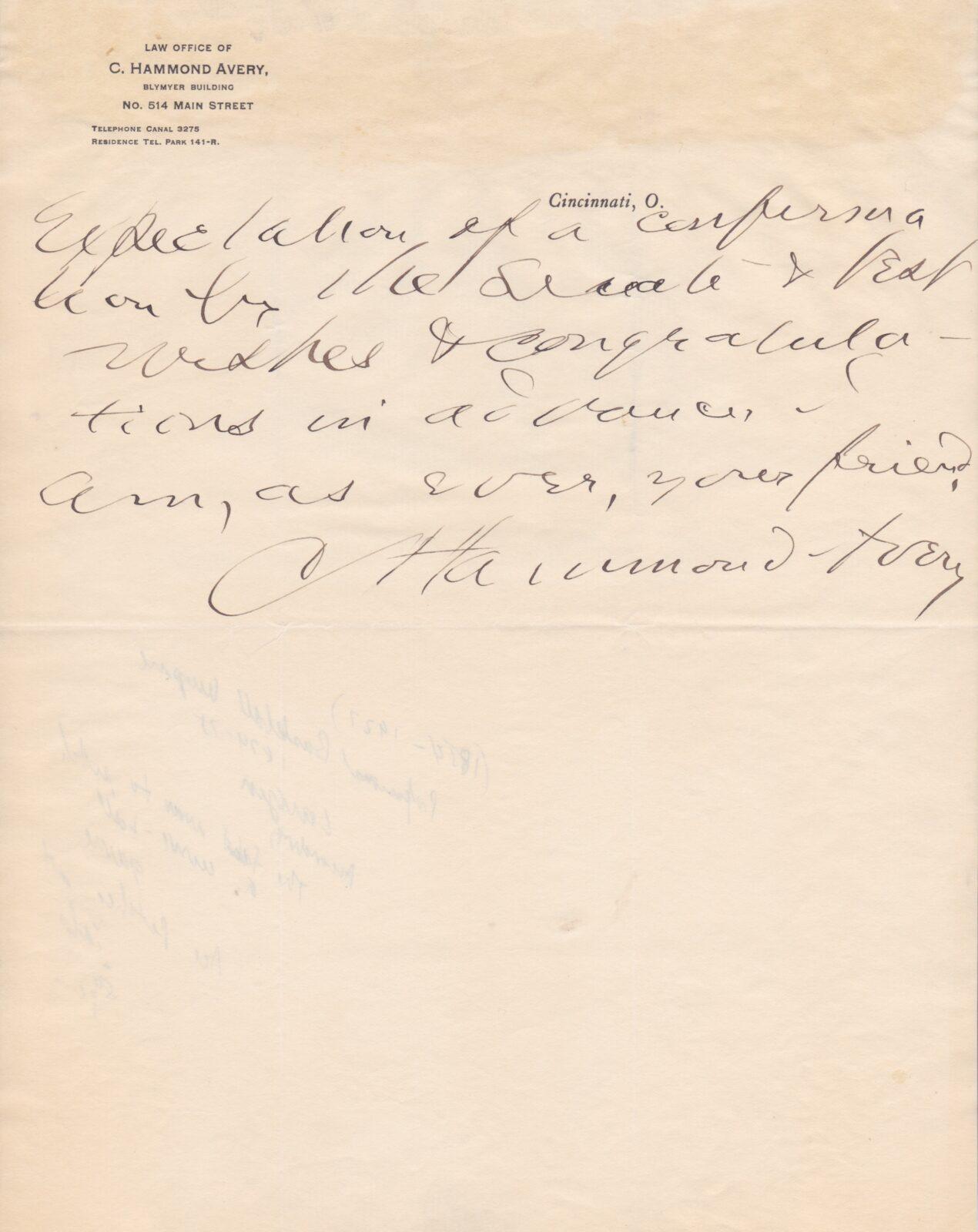 Page two of this letter has the signature of Hammond Avery, purportedly the first man to throw a curveball in a game. The signature is exceedingly rare. In fact this is the only one we’ve ever seen. Though the origin of the curveball mainly comes down to Candy Cummings or Fred Goldsmith, people in both camps assert