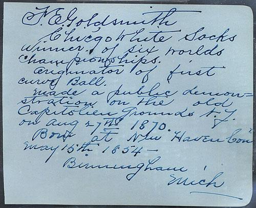 Fred Goldsmith's handwritten assertion that he invented the curveball