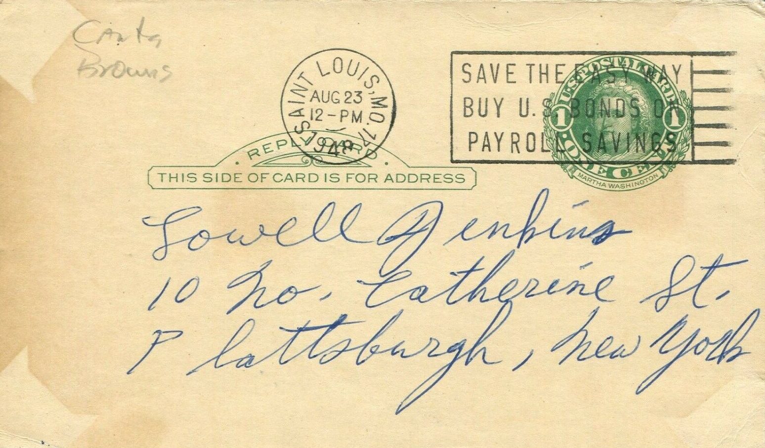 In the collection is this government postcard signed by Harry “The Cat” Brecheen in 1948.