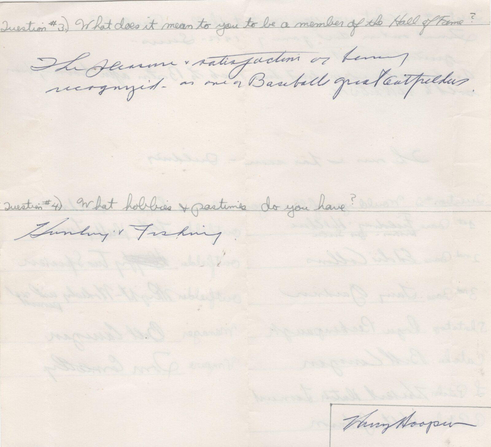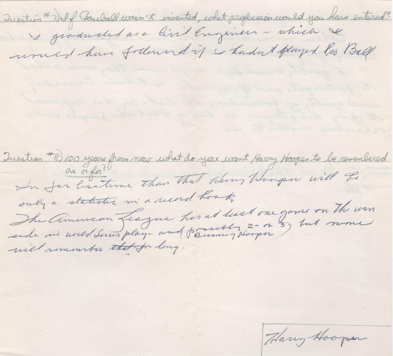 That was just terrific. Hooper thought he would only play baseball for a short time and begin his career in engineering. When he retired, he had various coaching jobs and wound up very successful in real estate.
