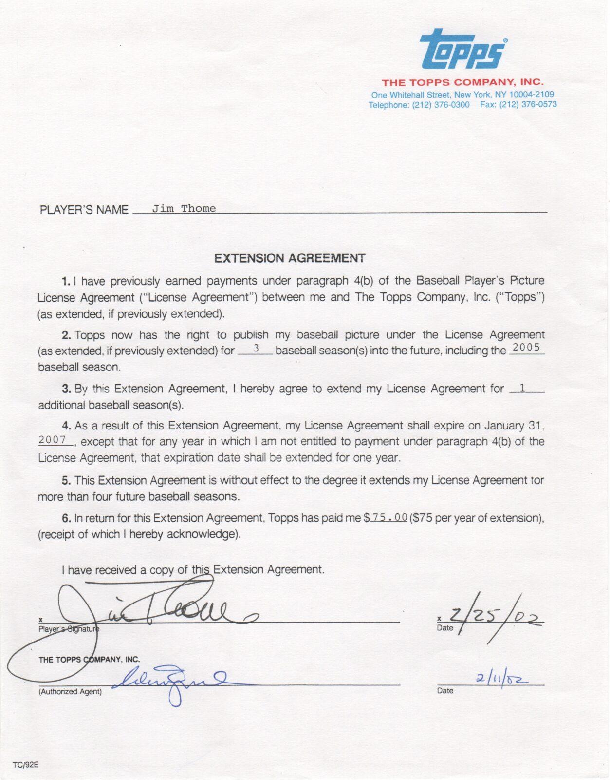 Thome signed this contract on February 24, 2002 just before beginning a season in which he’d hit a career-best 52 homers. Over the duration of the contract Thome made two All Star teams and led the league in homers for the only time in his career.