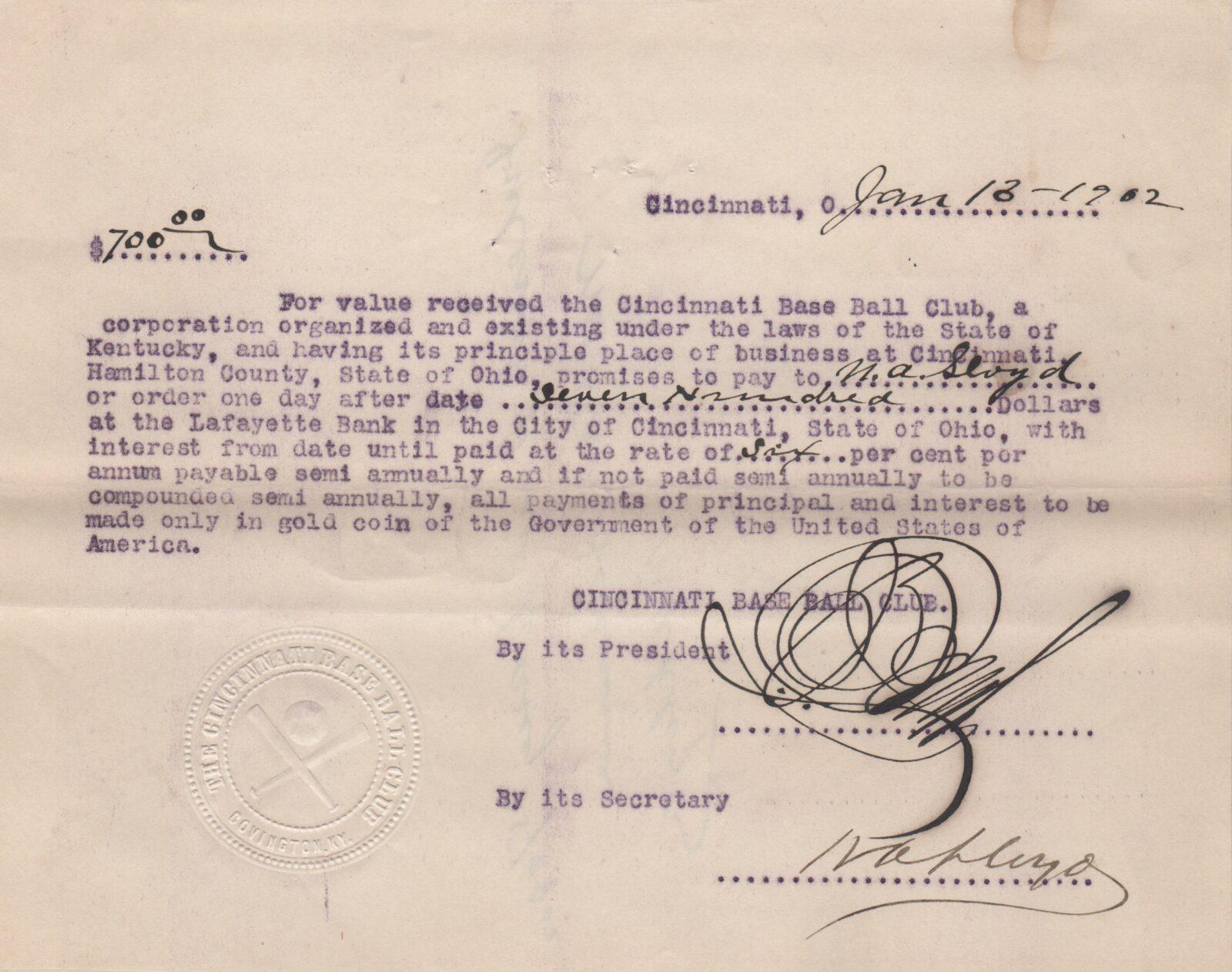 Though he gained fame as owner of the New York Giants, John T. Brush owned the Cincinnati Reds from 1890-1902. During baseball’s “Syndicate Ball” era, men often owned stock in more than one franchise. Brush owned the Reds while holding stock in the