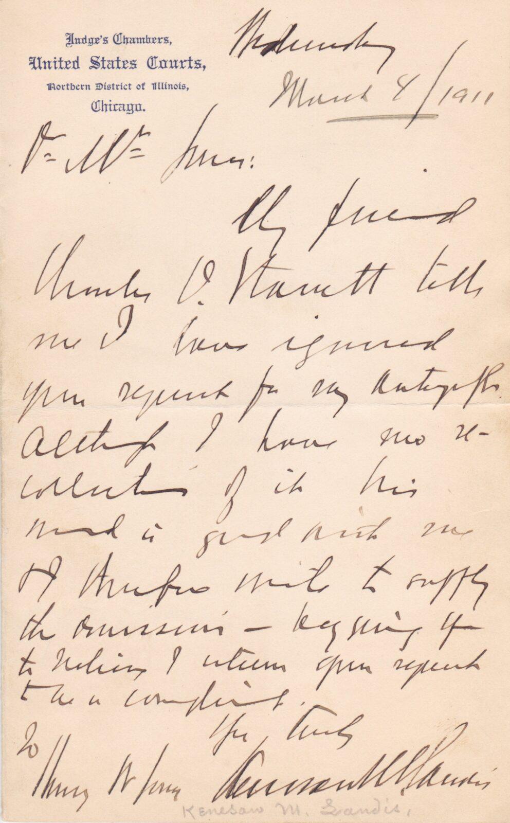 In this letter baseball’s second commissioner Happy Chandler writes to Kuhn.