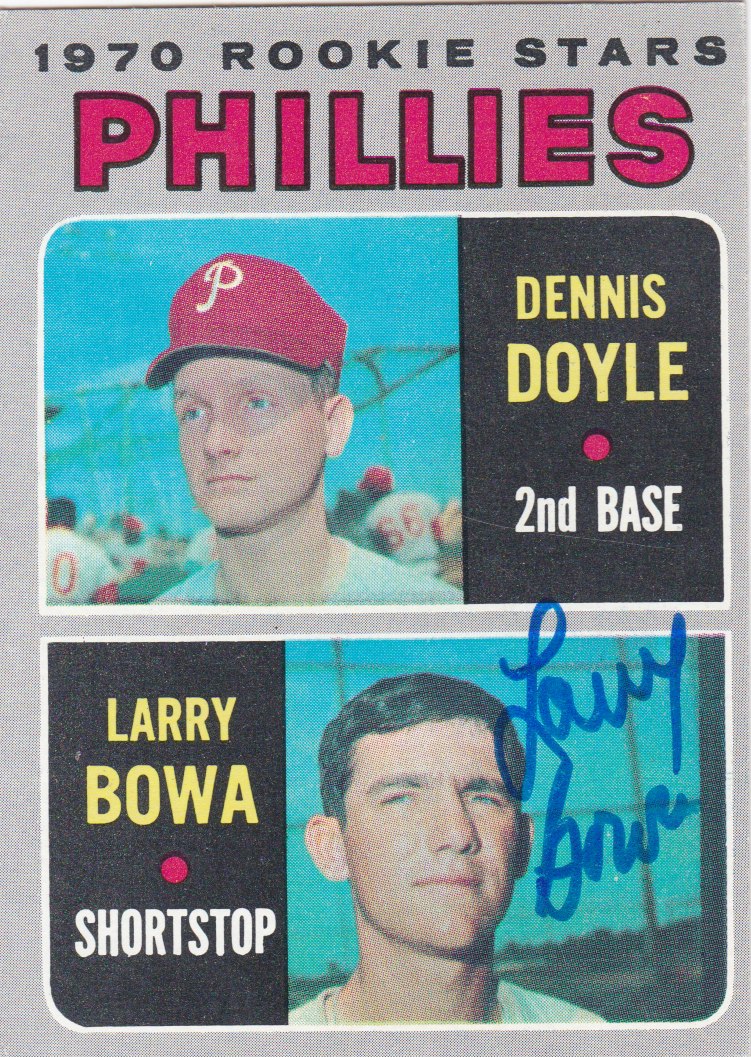 The image shows a 1970 Topps card signed by Bowa. It was his first appearance in a Topps set.