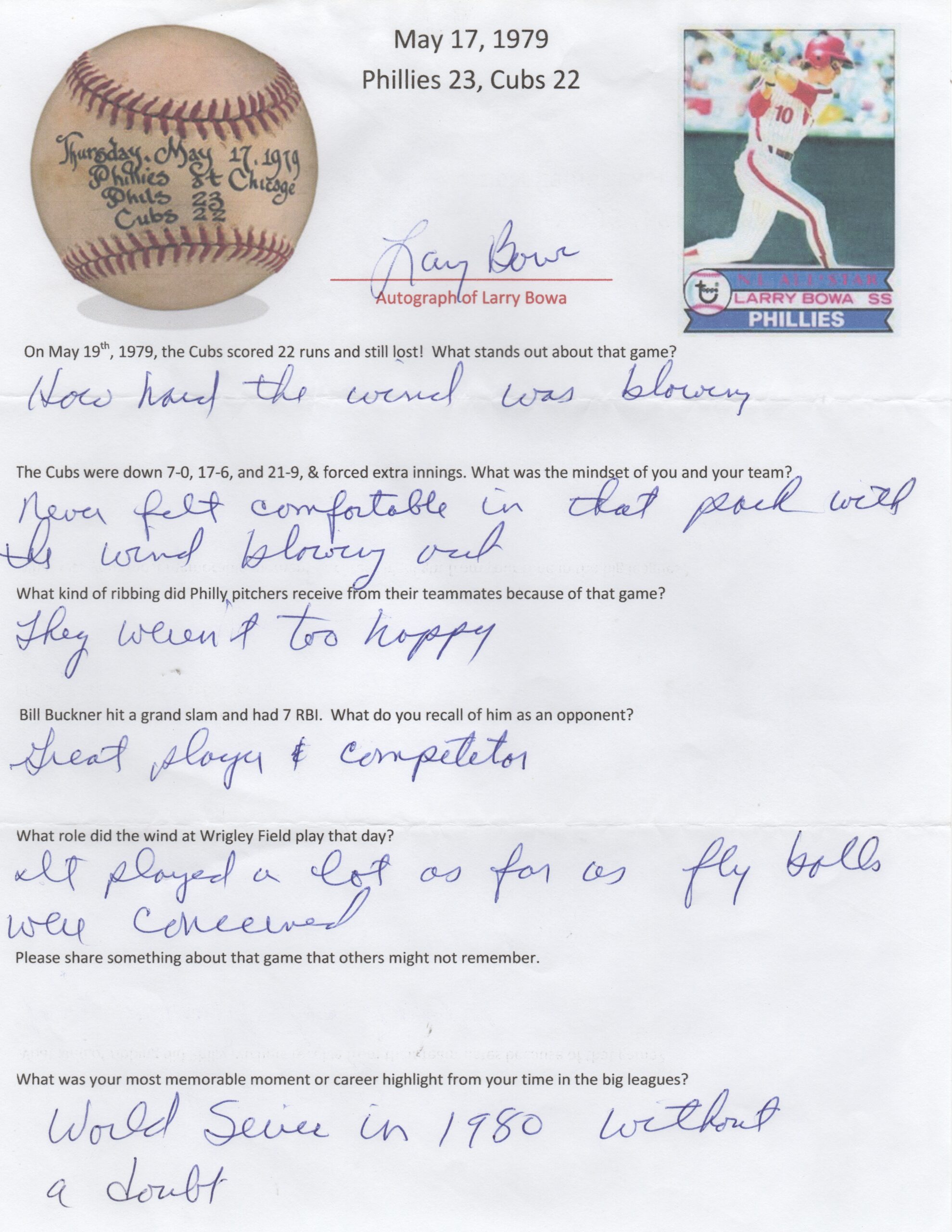 The deal sending Bowa to Chicago was ill-fated for the Phillies. Included in the trade was 22-year old prospect and future Hall of Famer Ryne Sandberg. Bowa and Sandberg were traded for Ivan DeJesus.