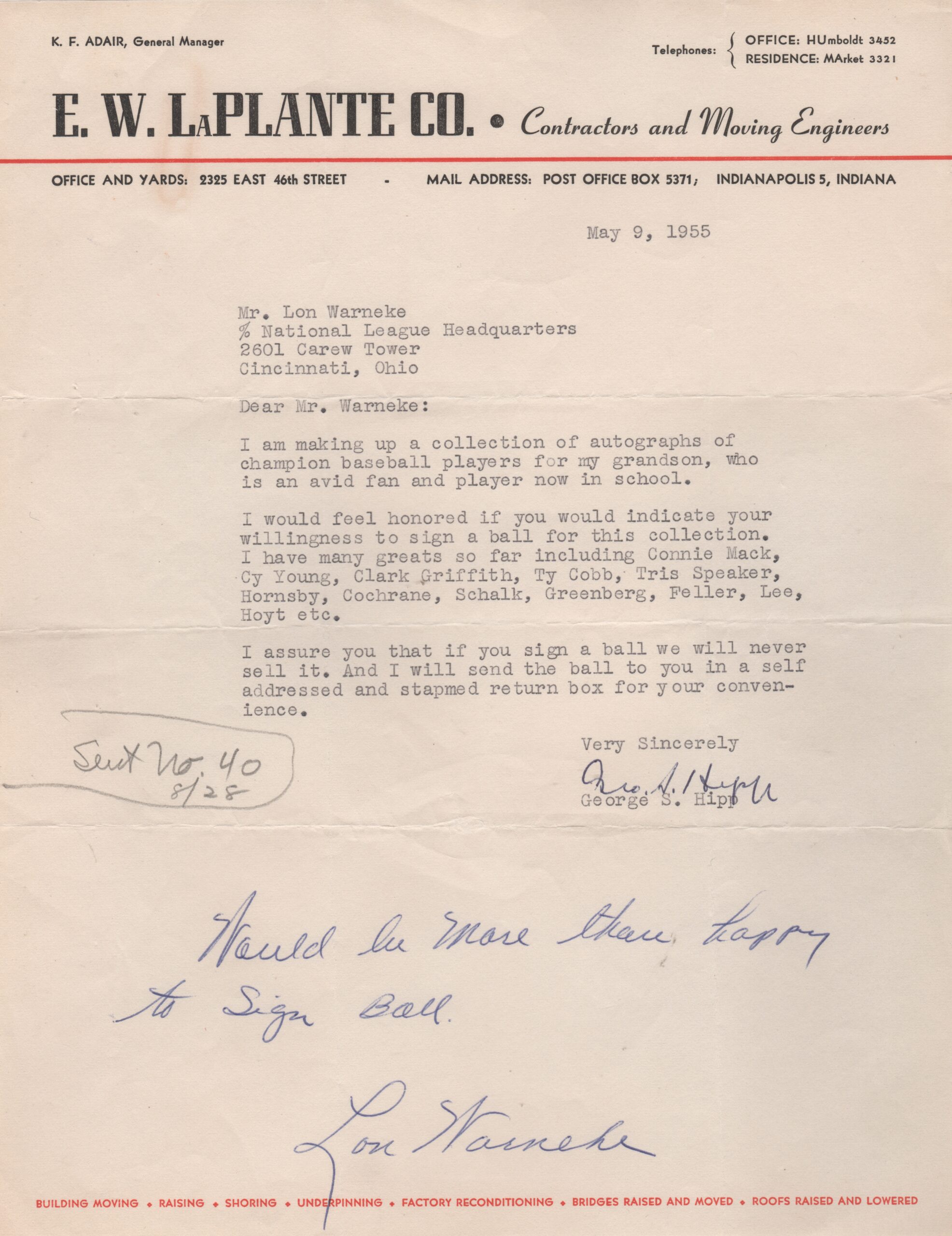 Shown here is a handwritten letter from Warneke’s umpiring partner Jocko Conlan. The content includes reference to the famously combative Leo Durocher.
