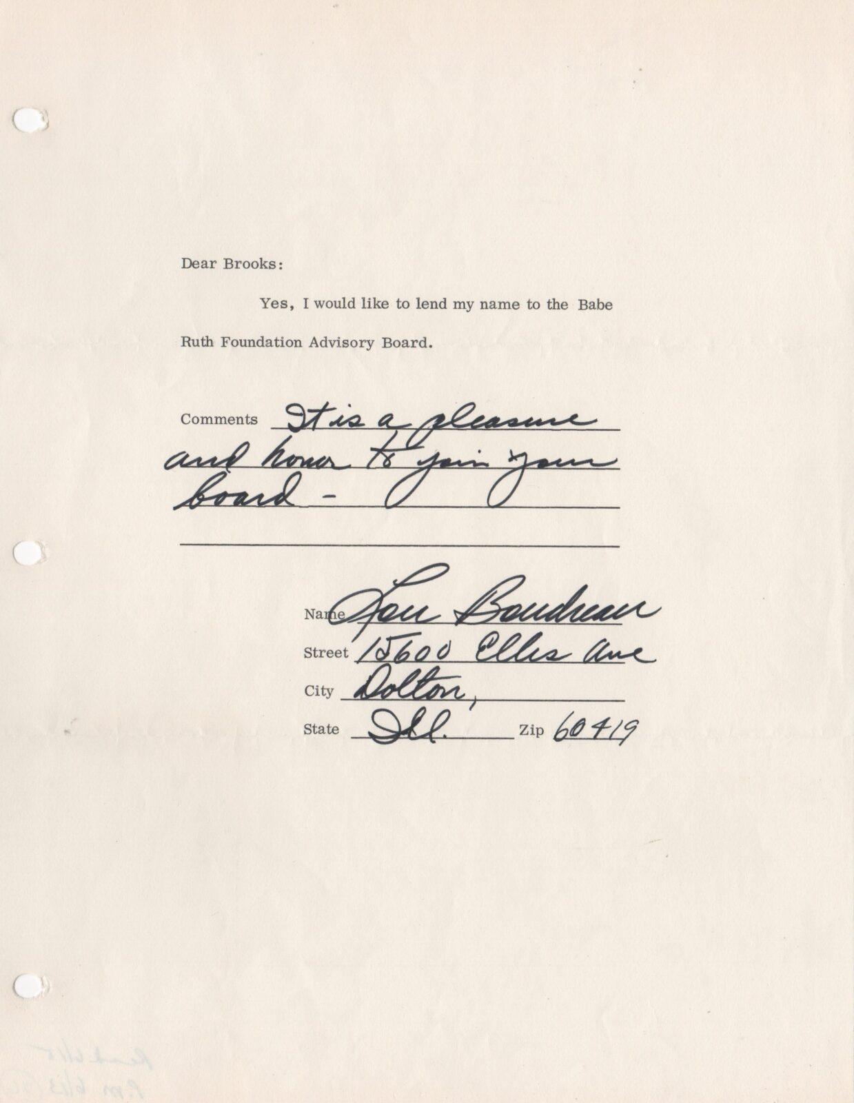 On January 20, 1970 Lou Boudreau received the news of his inclusion to the Baseball Hall of Fame. In this letter dated the same day, he shares his thoughts. “I’ve waited 12 years for this. It’s a dream.” Boudreau writes. It’s something you keep with in yourself. You just keep hoping, but you never really say it