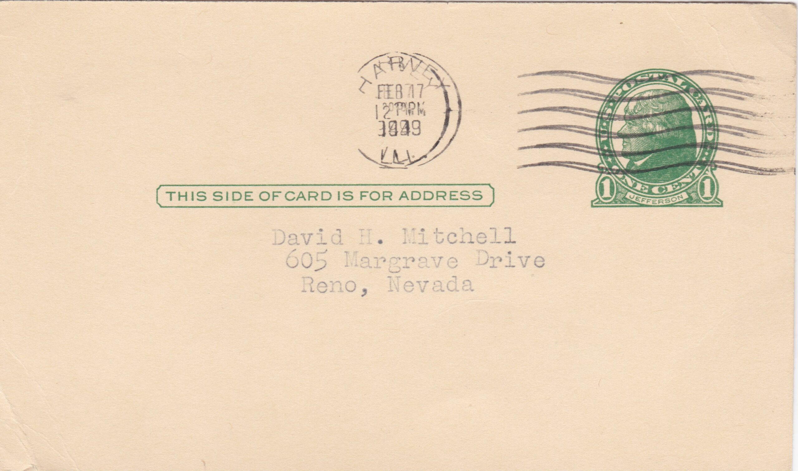 Government postcards give a signature provenance and often help determine the likelihood of authenticity. Shown here is the reverse of the postcard Lou Boudreau signed. Notice the postmark dated February 17, 1949. The date traces to four months after the Indians’ world championship season. Tha
