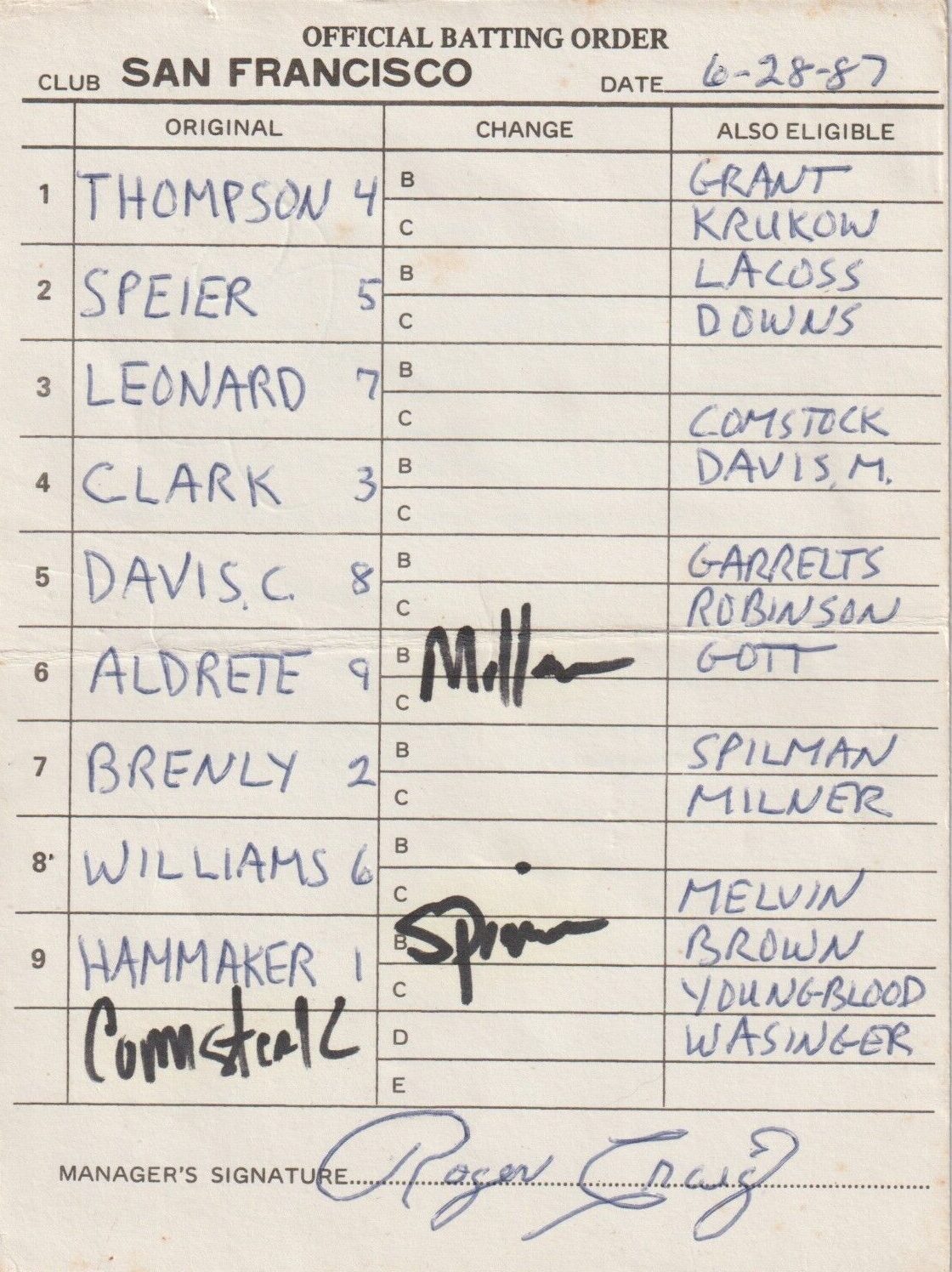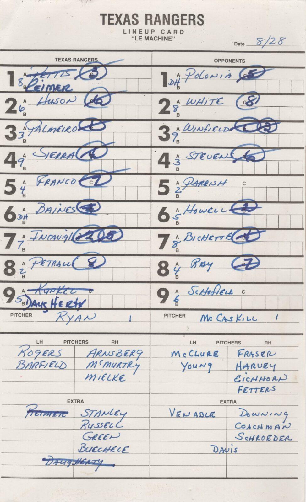 Nolan Ryan joined the 700-start club on 8/28/1990; here’s the dugout lineup card
