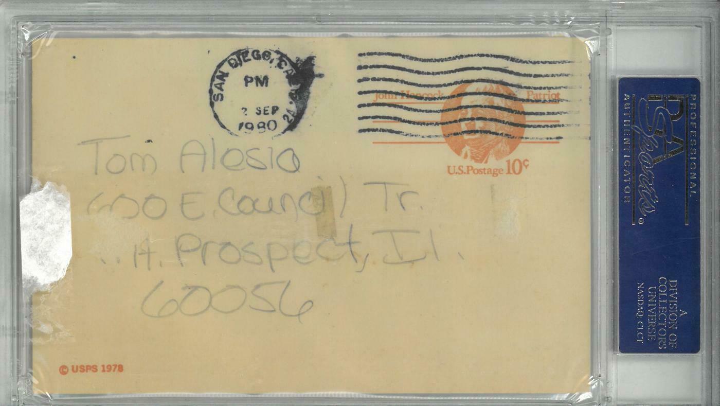 Padres hurler Randy Jones stood side-by-side with Christy Mathewson until 2001 when Hall of Famer Greg Maddux surpassed their mark for consecutive innings without a walk. In the collection is this lineup card that hung in the Braves dugout during Atlanta’s game vs. the Houston Astros on August 7,
