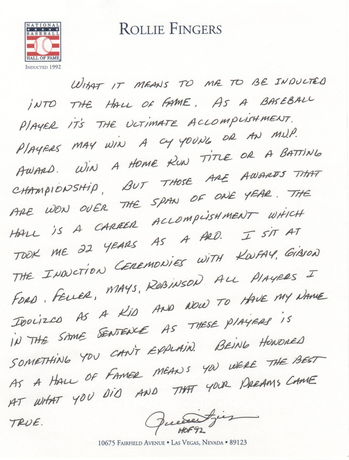 Fingers says being a Hall of Famer means, "...that your dreams came true".