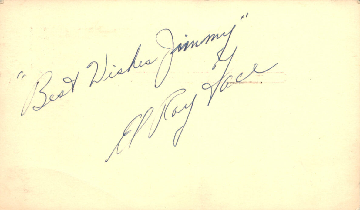 Shown here a government postcard signed by Face in 1953, his first big league season.
