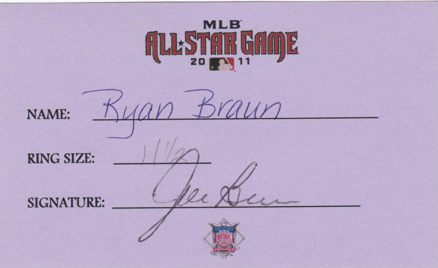 In the collection is the official document from Major League Baseball. Braun’s father Joe signs the bottom for his son to collect a 2011 All Star ring during his MVP season.