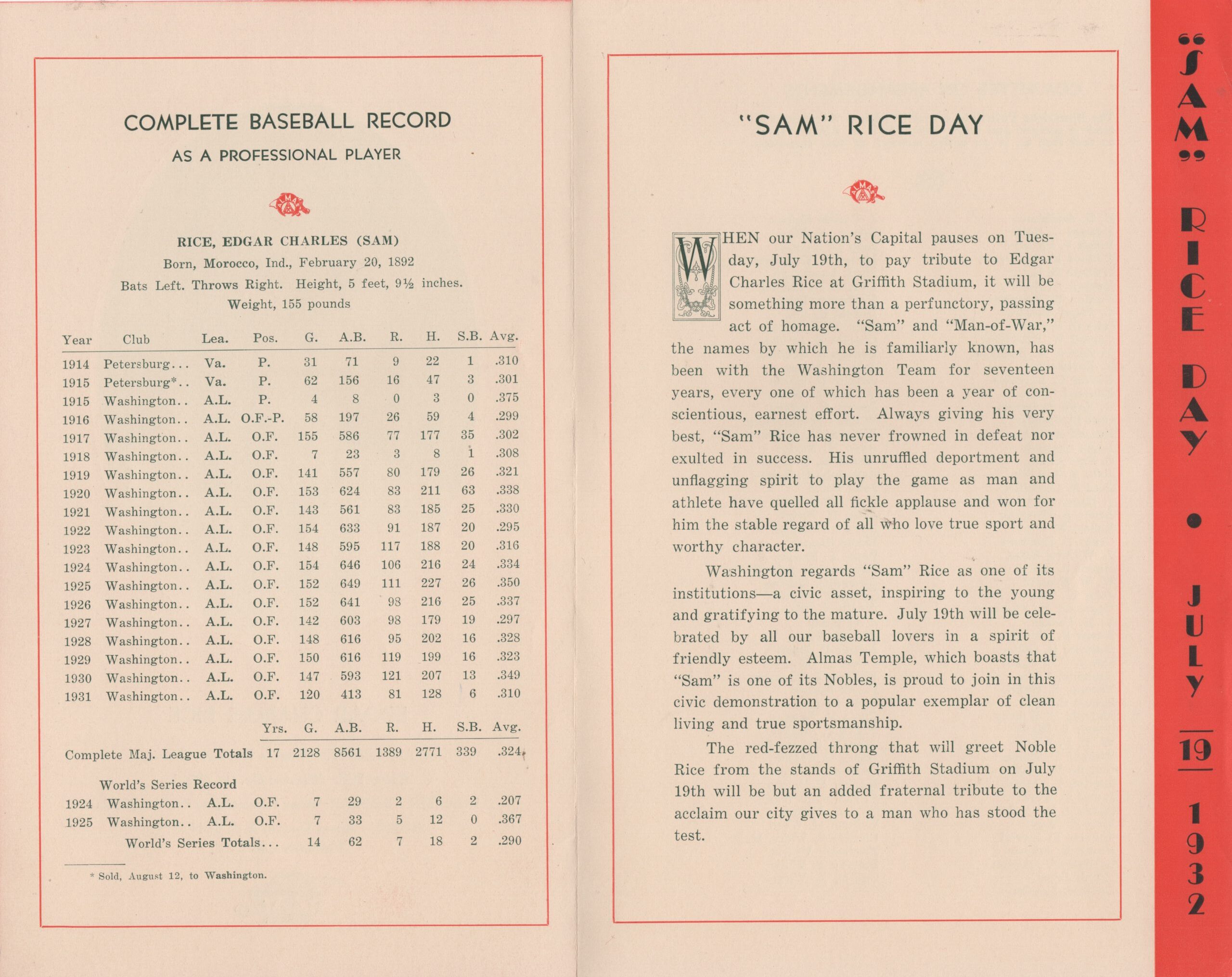 The Washington Senators became the Minnesota Twins. Today no team or fan base embraces Rice. He finished just 13 hits shy of the 3,000-hit milestone.