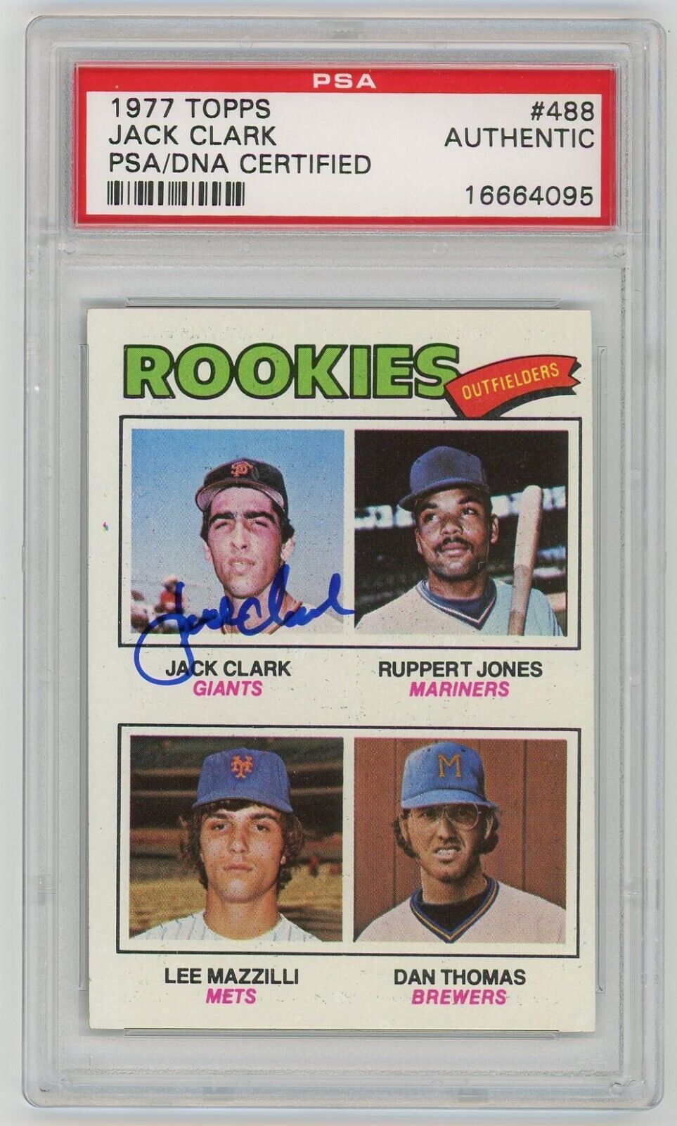 Shown here is Clark’s autographed Topps rookie card from 1977.