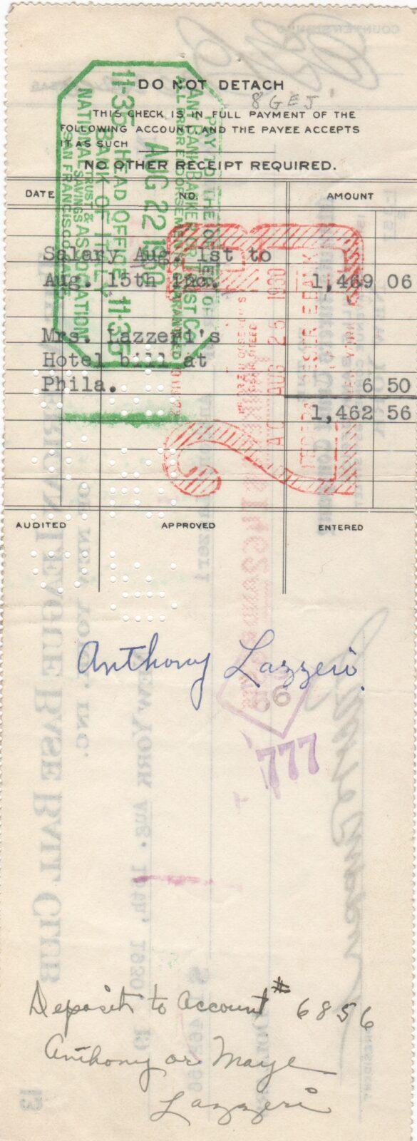 Tony Lazzeri passed away at age 42 in 1946. According to the United Press International, upon returning from vacation Lazzeri’s wife found him dead at their home. Forty-five years after his death Lazzeri gained baseball’s highest honor when he was inducted into the Hall of Fame. Shown he