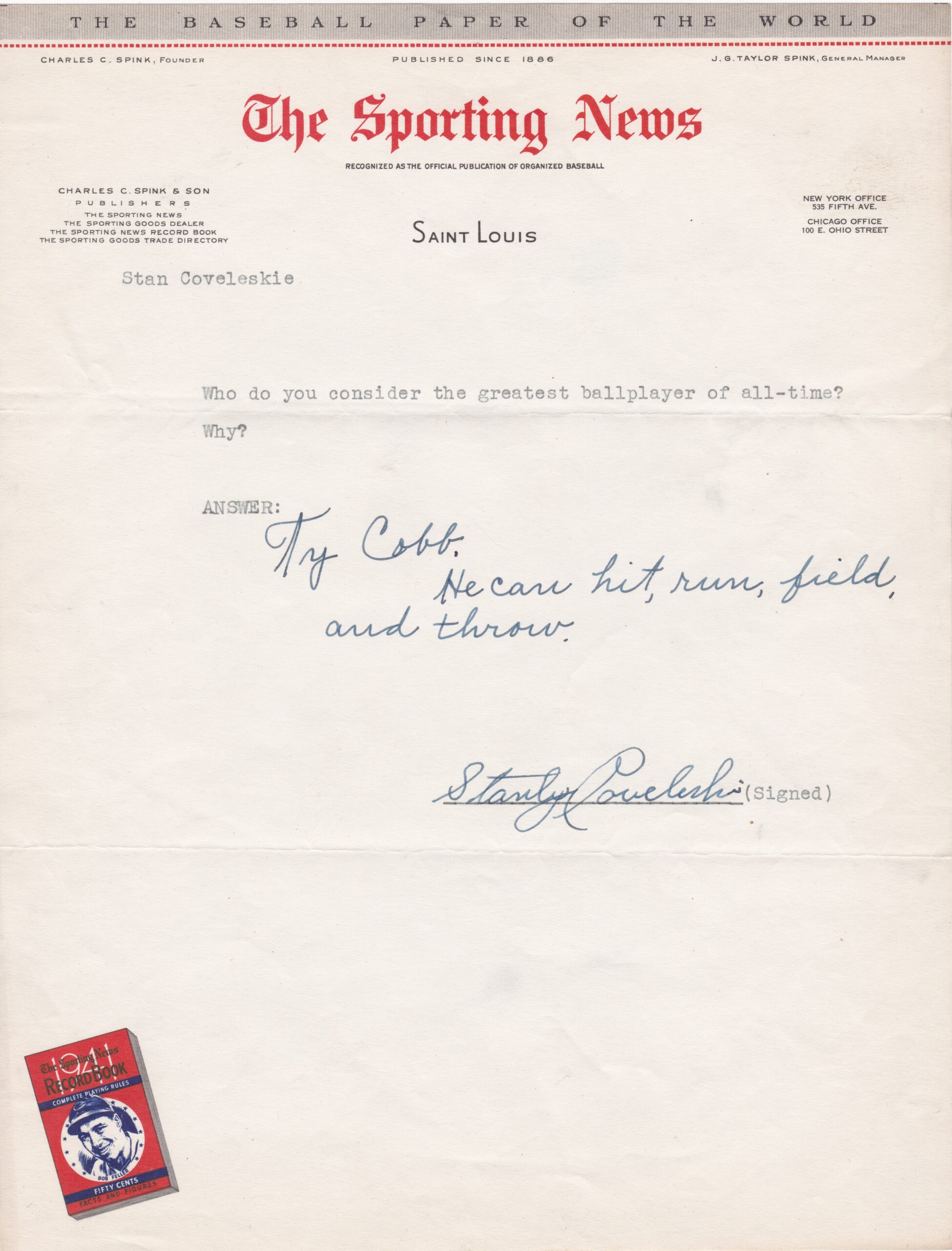 He rebukes Stump’s depiction of Cobb. “I completed the reading of Al Stump’s retaliation on Cobb about a month ago and discounted about half of it. I suspect that Stump had some malice in his craw as a consequence of Cobb’s refusal to sanction his first effort.