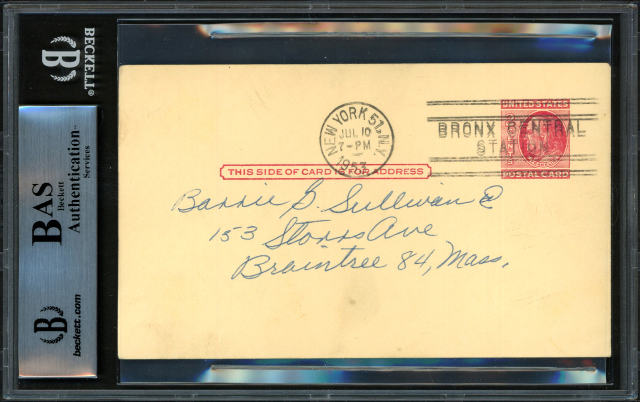 Shown here is a government postcard signed by Billy Martin in Mantle’s third year with the club. The back side of the postcard has a New York postmark from August 11, 1953 at 11:00pm. It can be seen by clicking here.