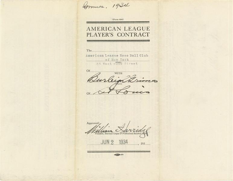 William Harridge signed Burleigh Grimes' 1934 Yankee contract as the last legal AL spitballer